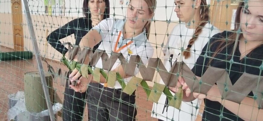Ученики Семибалковской школы совместно с советником директора по воспитанию и взаимодействию с детскими общественными объединениями М.Г. Ивановой присоединились к благотворительной акции по плетению маскировочных сетей, организованной волонтерами села Семибалки. Изготовлением маскировочных сетей в Семибалках занимаются активные, неравнодушные жители. Теперь и в школе организовано место для плетения сетей. В каждую ячейку сети детскими руками вплетается доброта и любовь, поэтому такая защита надежней любой брони.