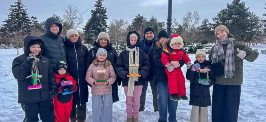 К волонтёрам с удовольствием присоединились азовские семьи с детьми, для которых этот день стал не только полезным, но и познавательным. Совместными усилиями участники помогли пернатым обитателям сквера пережить сложный зимний период.