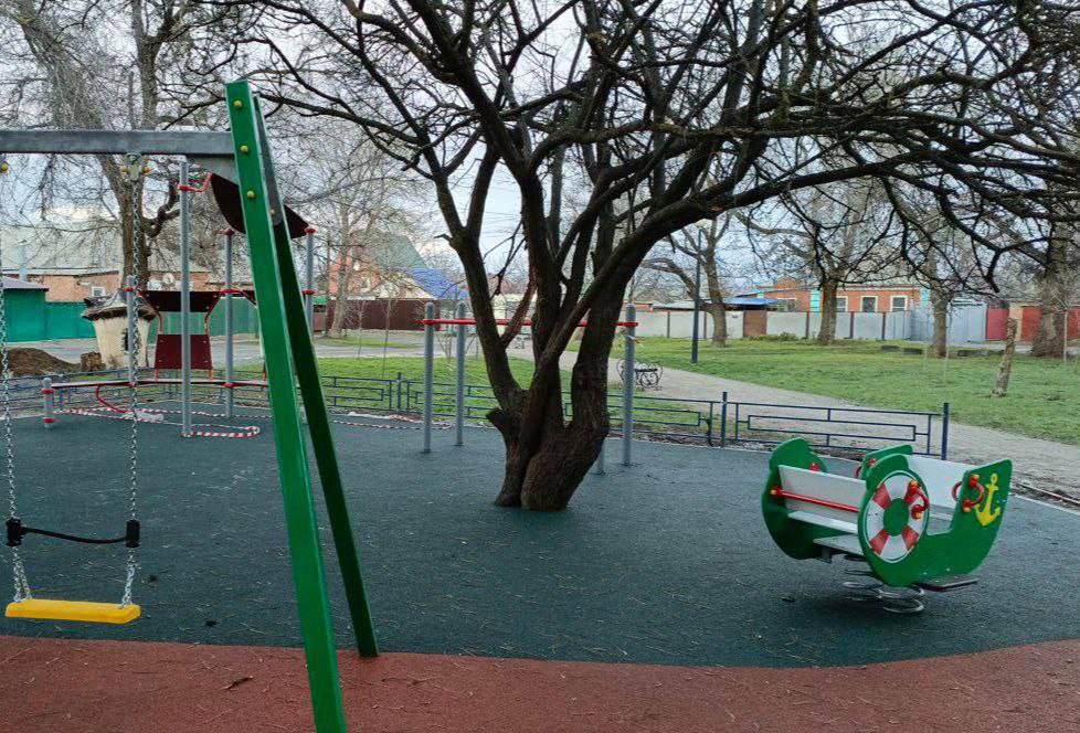 Установлен яркий детский городок, который включает в себя горки, качели и разнообразные игровые комплексы для детей разного возраста.