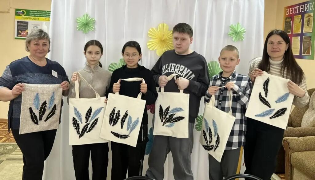 В рамках фестиваля в СРЦ Азовского района прошел необычный мастер-класс: инструктор по труду Татьяна Тарыкина провела для семьей, воспитывающим детей с РАС, мастер-класс по декорированию сумок-шоперов в стиле деним