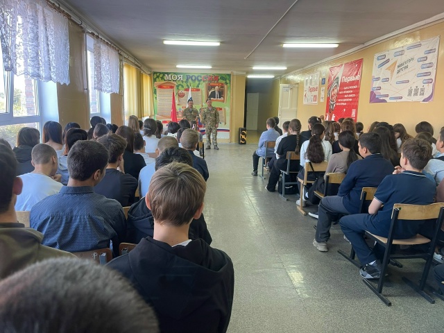 Бойцы рассказали учащимся Задонской школы о своей службе и задачах, которые выполняют в зоне специальной военной операции