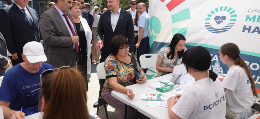 Врио губернатора Ростовской области Юрий Слюсарь 12 августа в рамках рабочего визита в Азовский район побывал в местной центральной районной больнице. В этот день туда прибыл медицинский «поезд здоровья», включающий бригаду из 35 врачей узкого профиля и парк специализированного автотранспорта с диагностическими комплексами.
