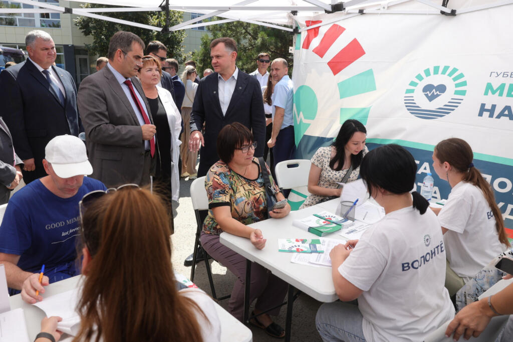 Врио губернатора Ростовской области Юрий Слюсарь 12 августа в рамках рабочего визита в Азовский район побывал в местной центральной районной больнице. В этот день туда прибыл медицинский «поезд здоровья», включающий бригаду из 35 врачей узкого профиля и парк специализированного автотранспорта с диагностическими комплексами.